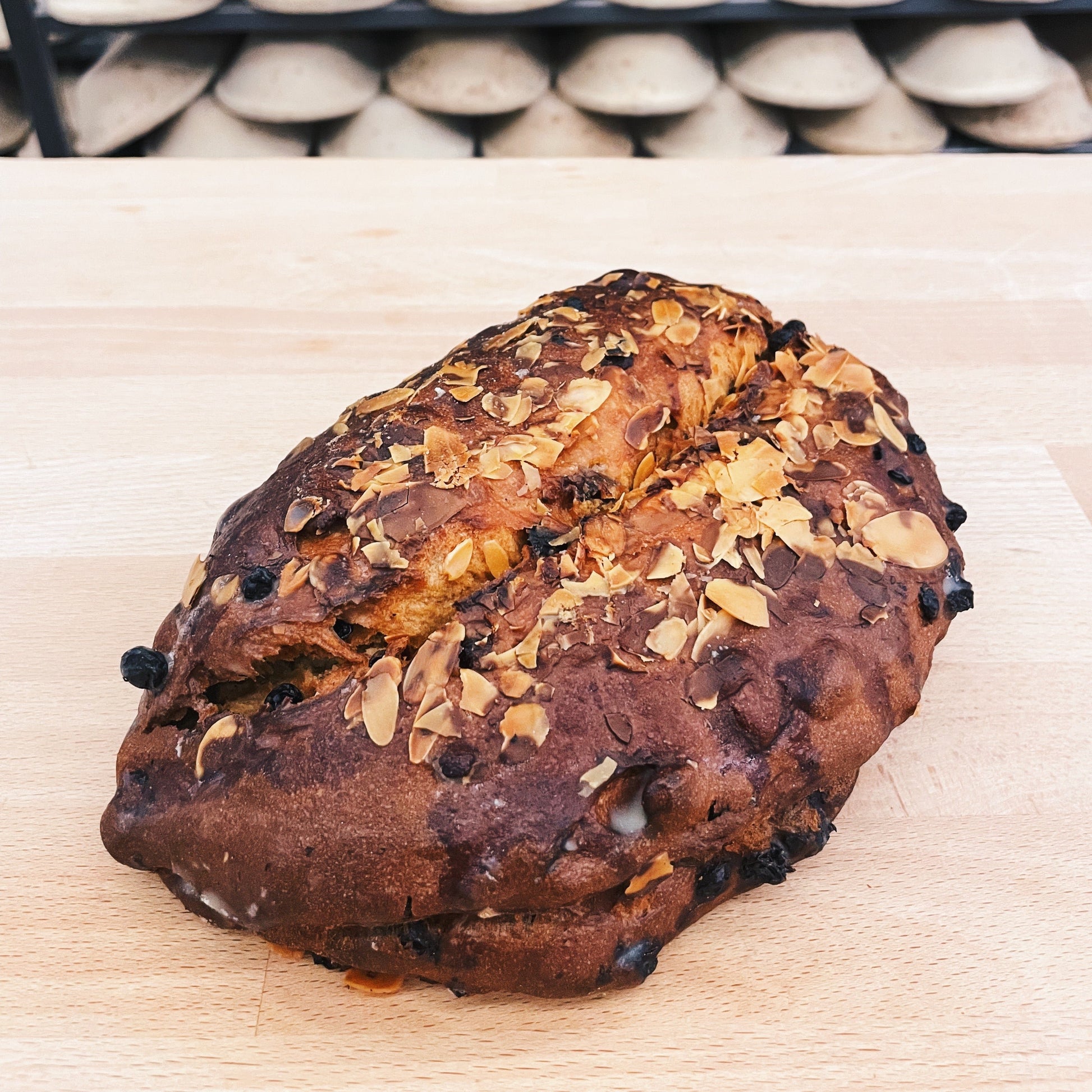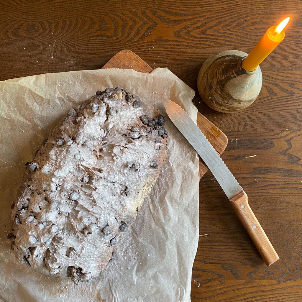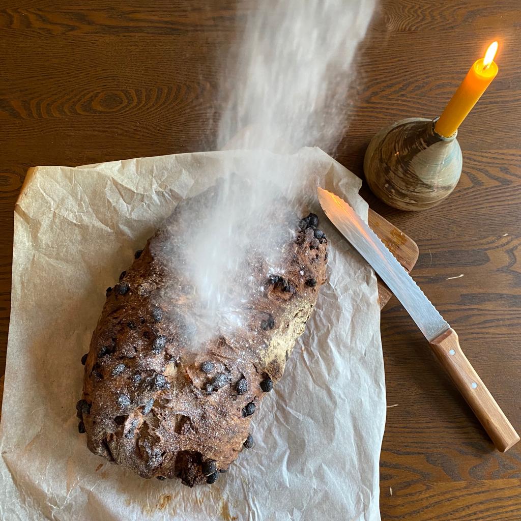Onze stol is gemaakt van lokale steengemalen granen. Amandelen, rozijnen, krenten & citroenschil gedrenkt in onze huisgemaakte mout, donkere rum en kaneel. Natuurlijk met echt amandelspijs. De stol weegt zo'n 750 gram.