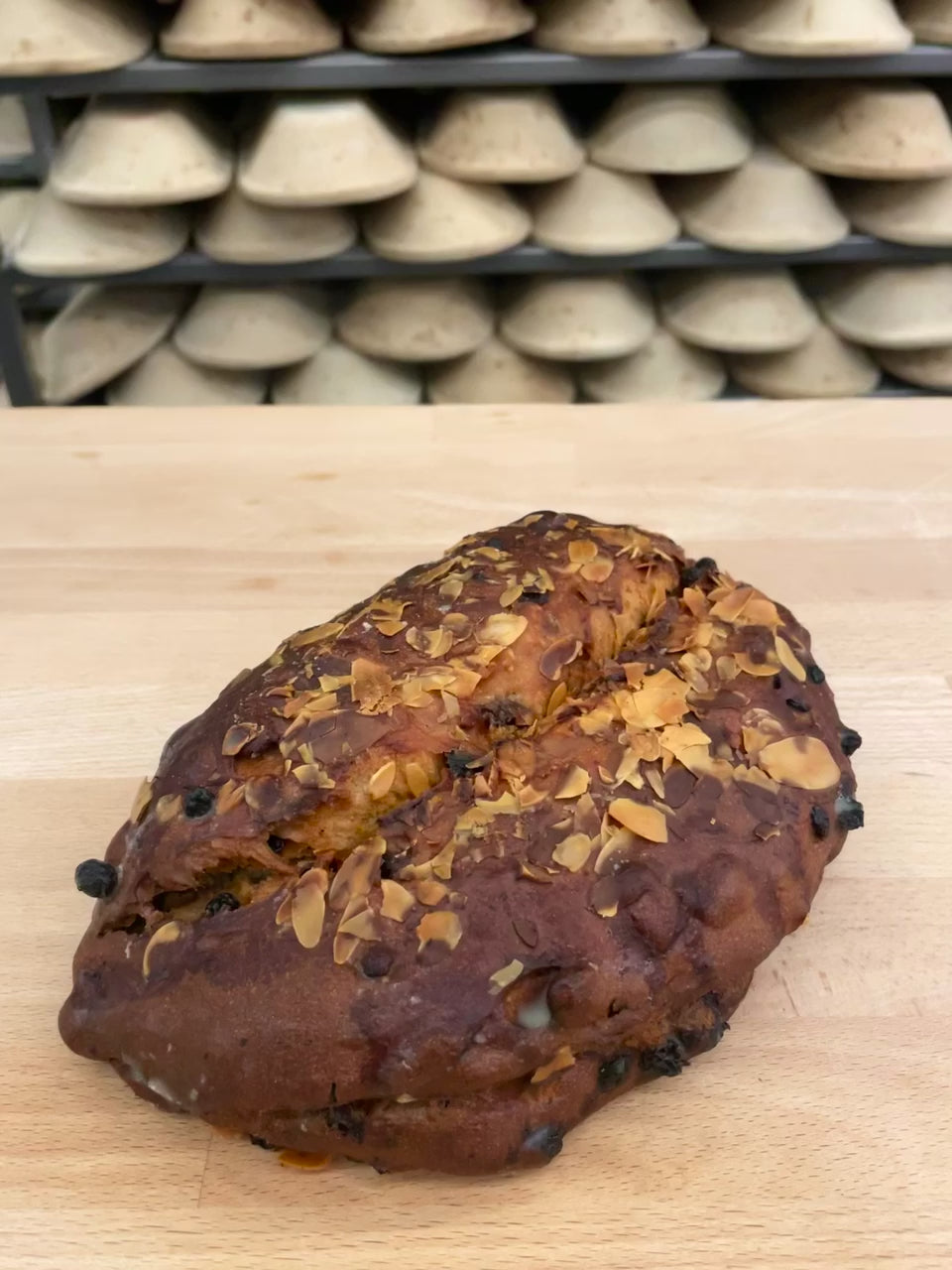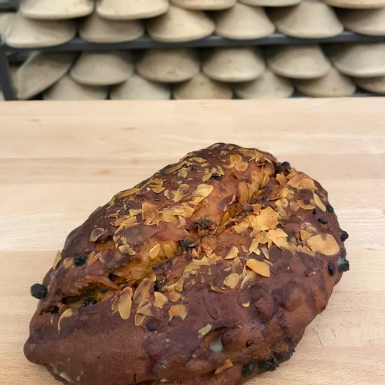 Ingrediënten voor het deeg zijn boter, melk en eieren, maar ook onze desemstarter en een beetje citroenschil om de rijke smaken te balanceren met een beetje fruitigheid.