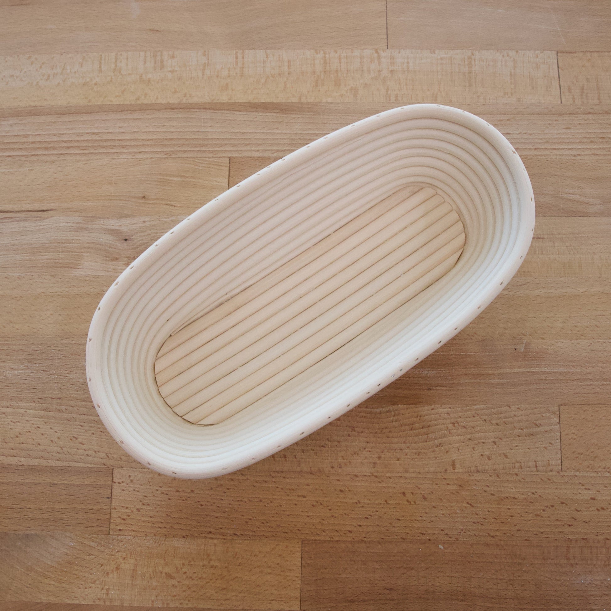 Dit ovale rijsmandje van rotan geeft brooddeeg vorm en steun tijdens de narijs. Het is bedoeld om het deeg in te laten rusten, niet voor het bakken zelf. Het natuurlijke reliëf van het riet laat een mooi patroon achter.